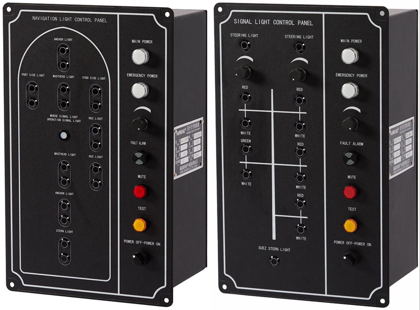 海星集团研发的航行灯控制器(HX-NLC)与信号灯控制器(HX-SLC),是专为船舶复杂航行环境设计的智能控制设备。它们承担着船舶夜间航行、恶劣天气预警及信号通信的关键任务,通过精准控制航行灯与信号灯的启闭逻辑,为船舶提供全天候可视化安全保障,是船舶航行安全的“神经中枢”。控制器设有调光、试灯、消音等按钮,具有主备电源自动转换、主电失电报警、航行灯信号灯故障报警等功能,深受广大用户的喜爱和信赖。