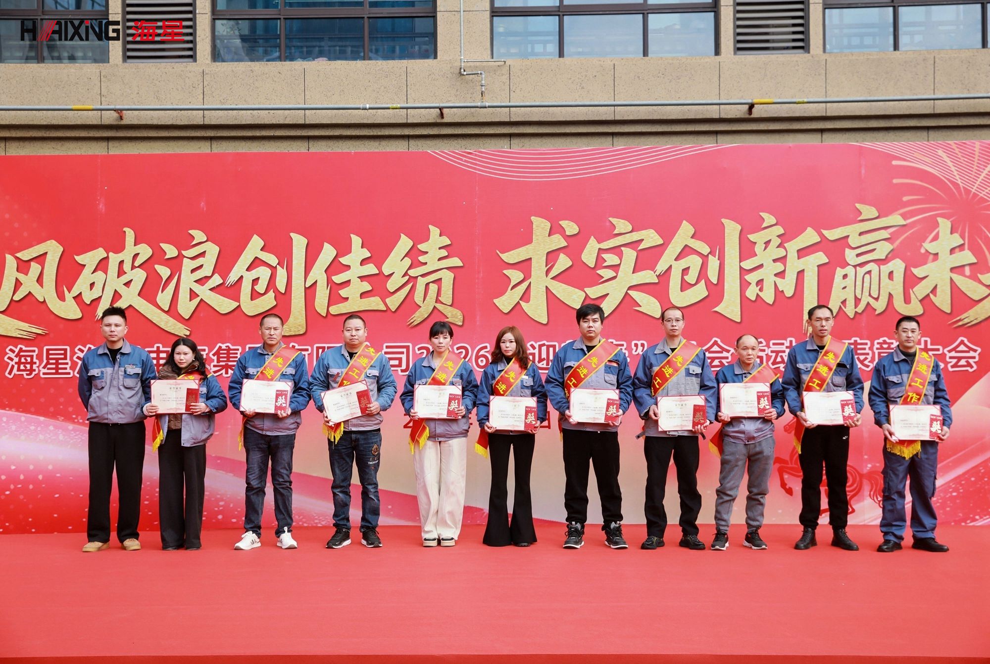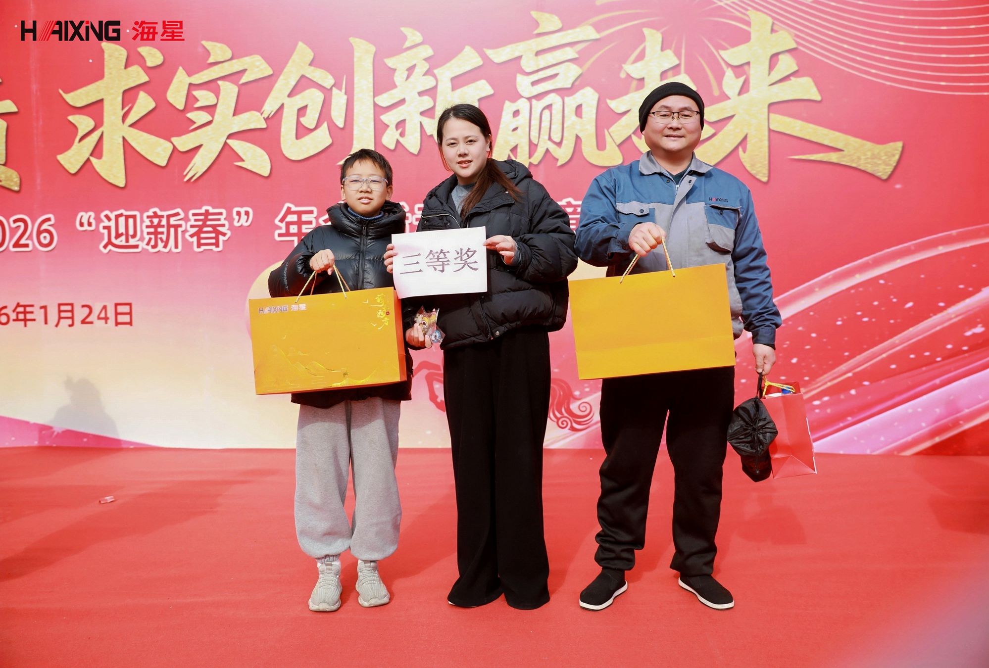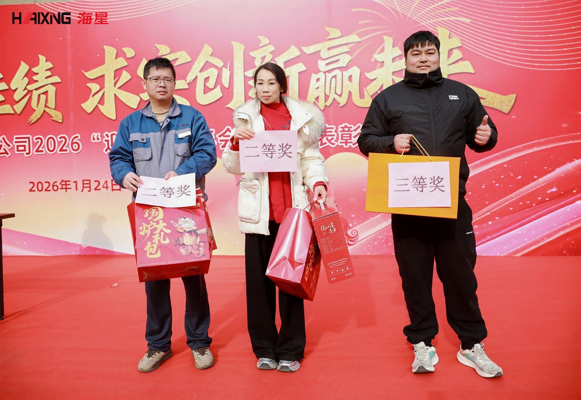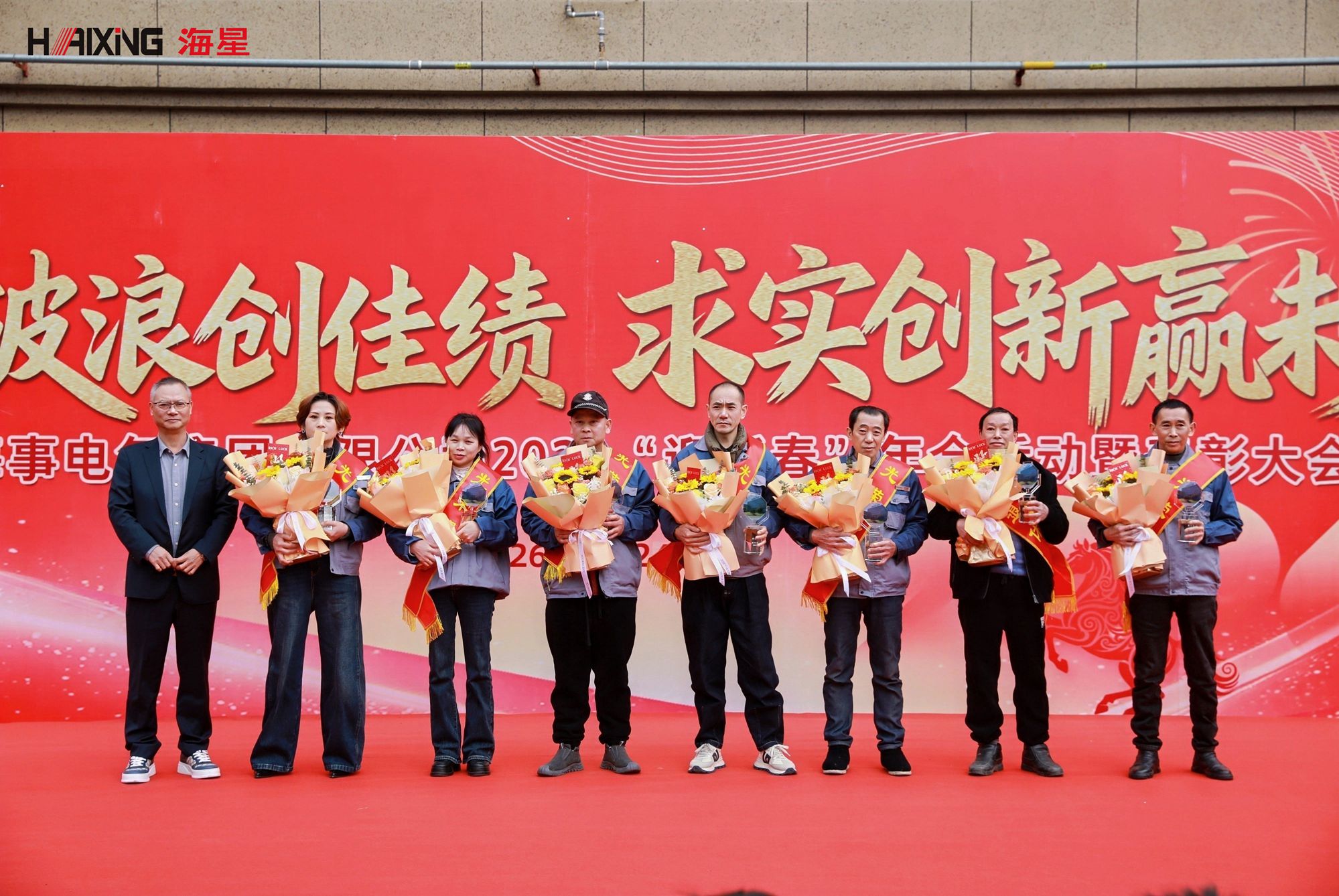 岁末年初,辞旧迎新。2026年1月24日,海星海事电气集团2026“迎新春”年会活动暨表彰大会在公司厂区内隆重举行。本次活动以“乘风破浪创佳绩 求实创新赢未来”为主题,分为表彰大会与趣味游园会两大环节,旨在表彰先进、凝聚人心、共迎新春。