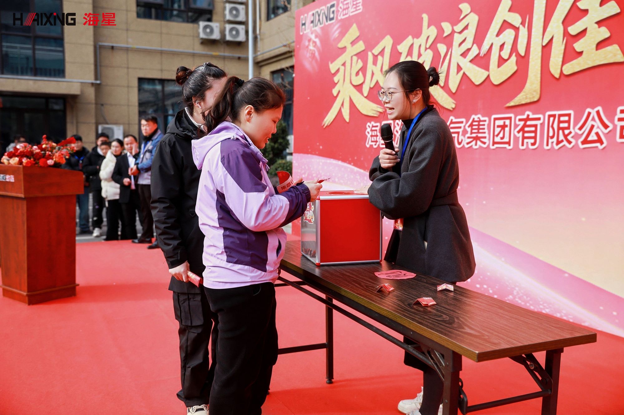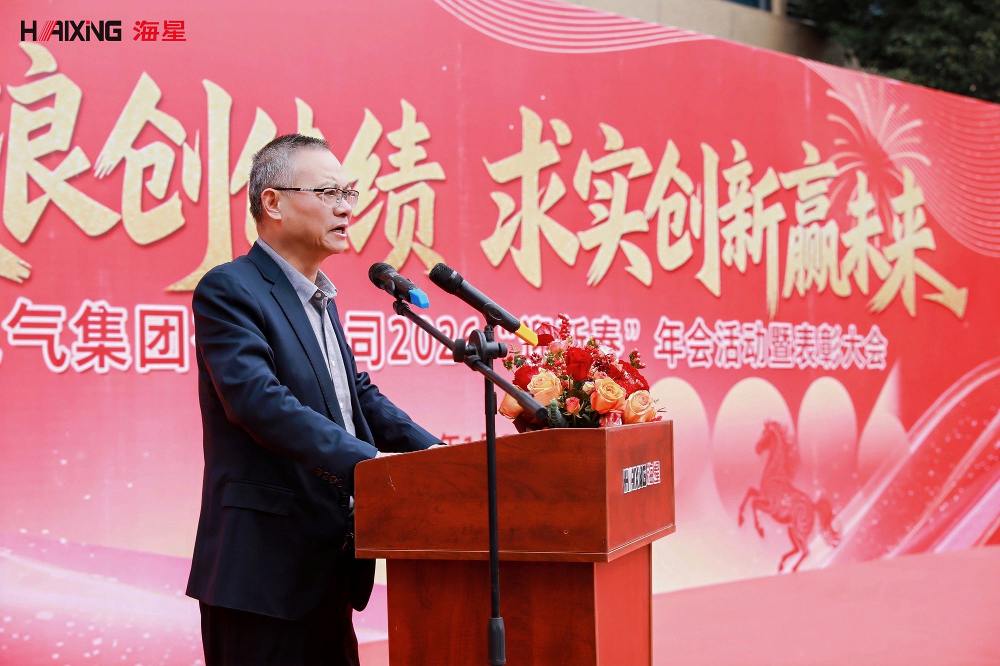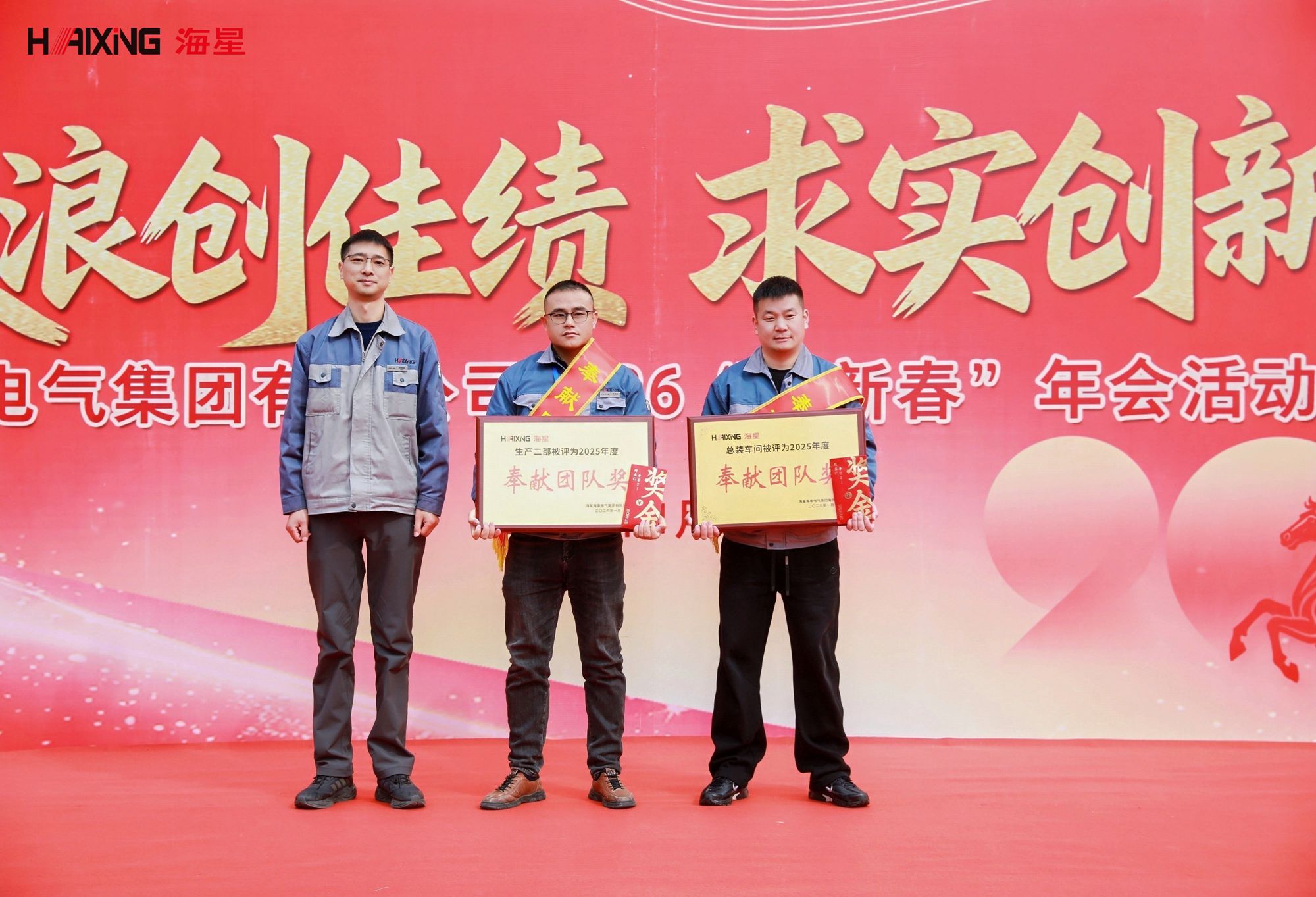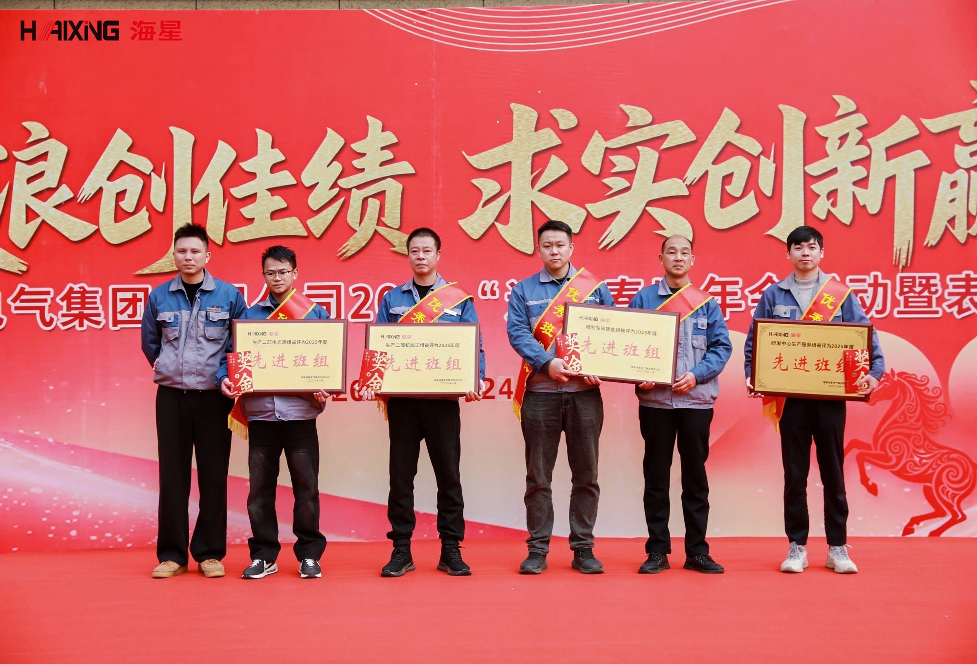 岁末年初,辞旧迎新。2026年1月24日,海星海事电气集团2026“迎新春”年会活动暨表彰大会在公司厂区内隆重举行。本次活动以“乘风破浪创佳绩 求实创新赢未来”为主题,分为表彰大会与趣味游园会两大环节,旨在表彰先进、凝聚人心、共迎新春。