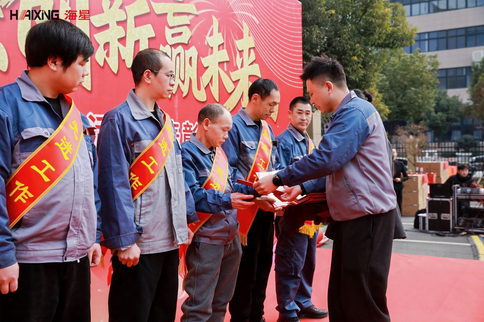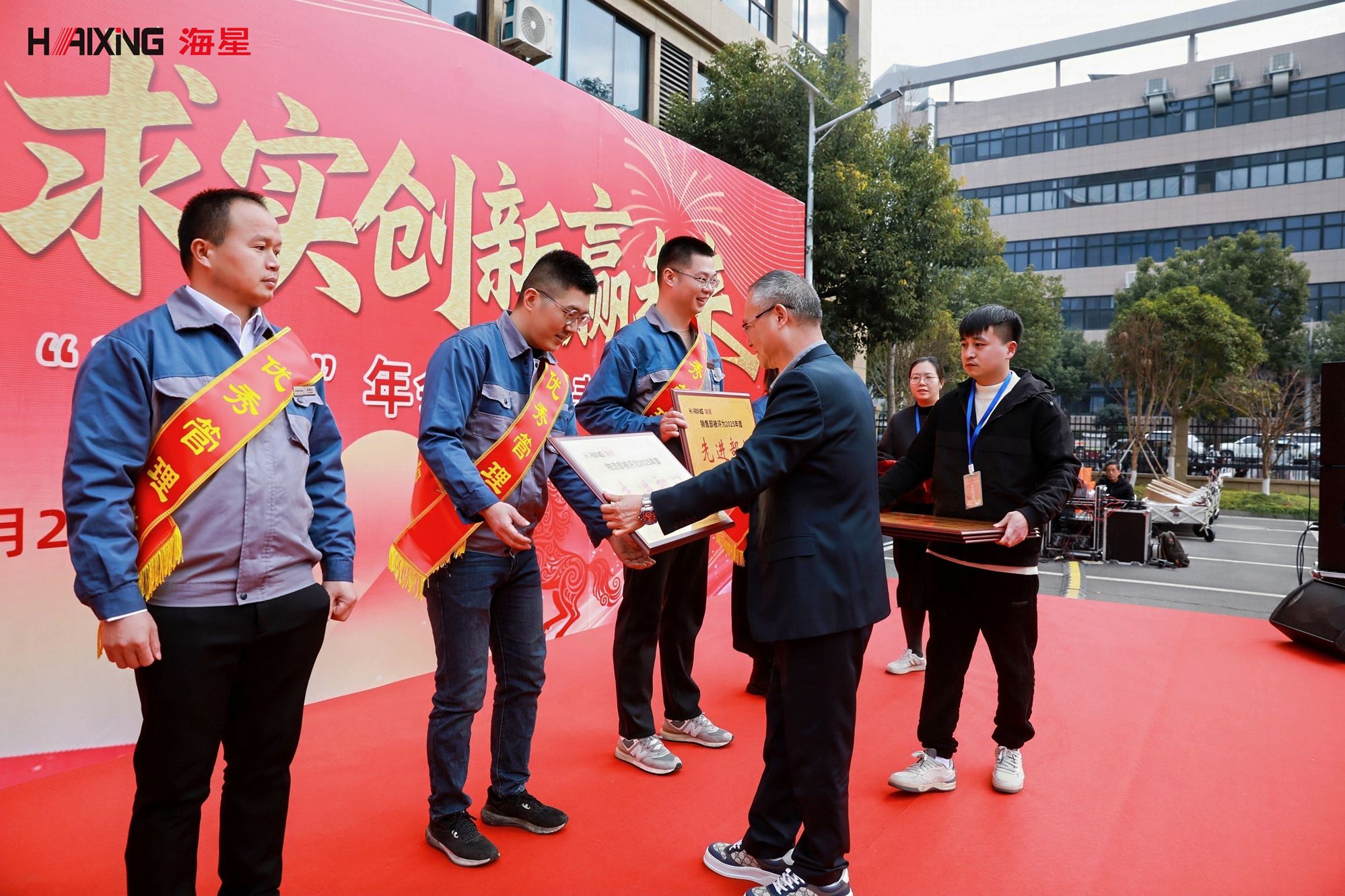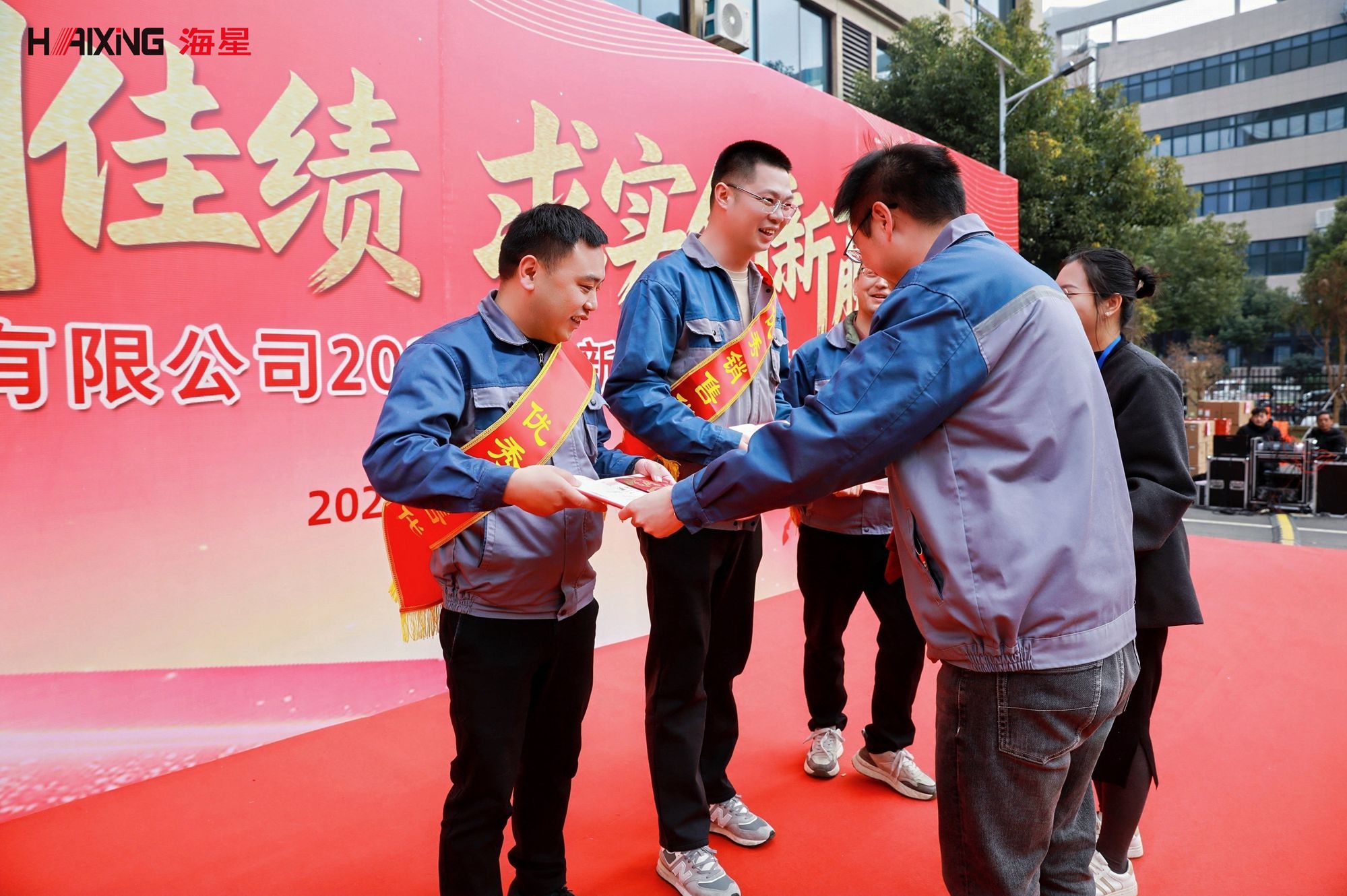 在庄严的音乐声中,在庄严的音乐声中,先进工作者、先进班组、先进部门/车间、奉献团队奖、优秀党员、优秀销售代表等奖项依次颁发。获奖者们身披绶带,手捧奖杯与荣誉证书,脸上洋溢着自豪与喜悦。