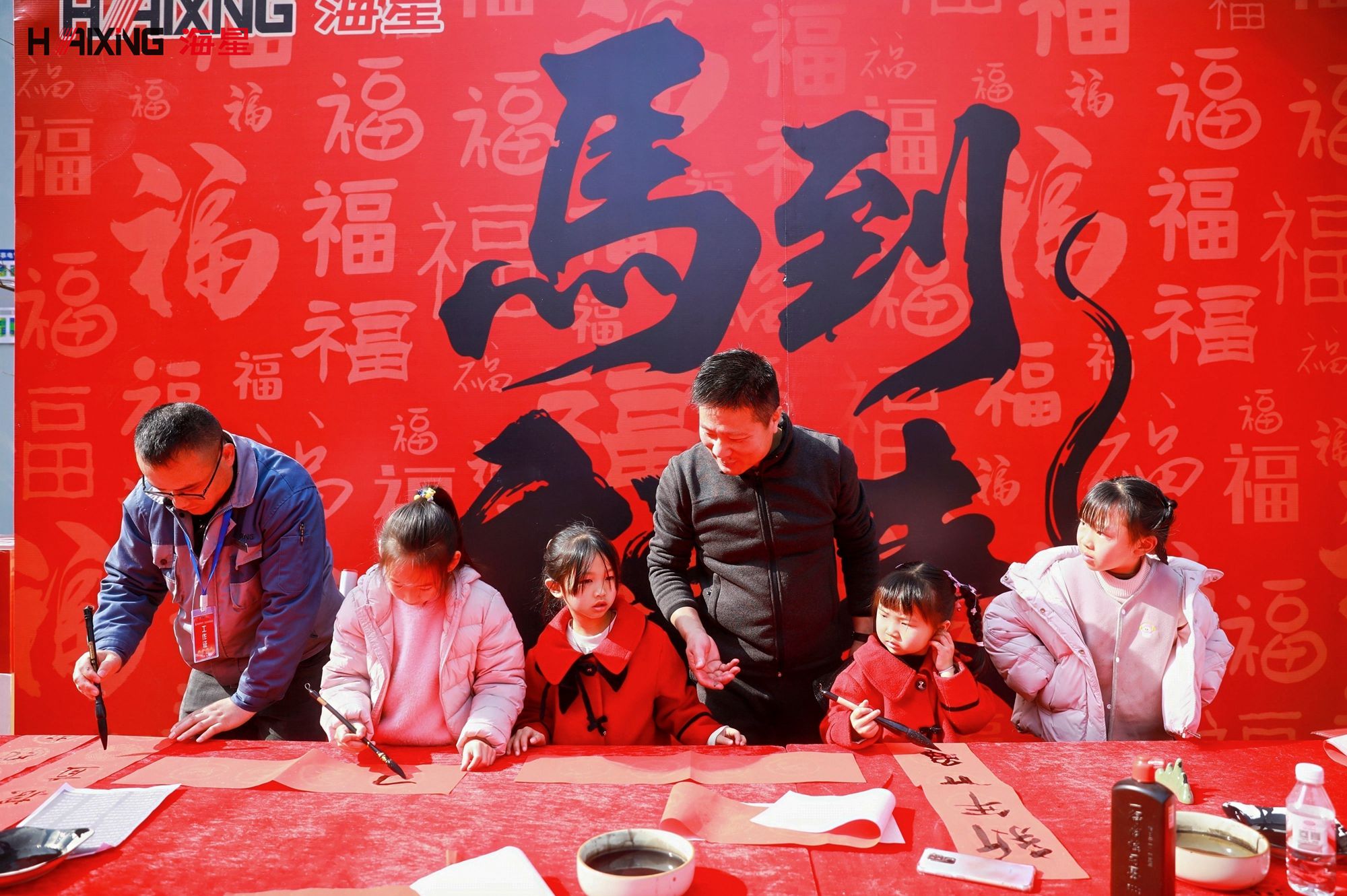 书法送福:书法老师的案前排起长龙。墨香与欢笑声交织,员工们有的屏息凝神看老师挥毫,有的则大胆提笔,写下一个个福字。“这个福字我要贴在家里,比买的更有意义!”一位员工手持墨迹未干的福字,开心地分享道。
