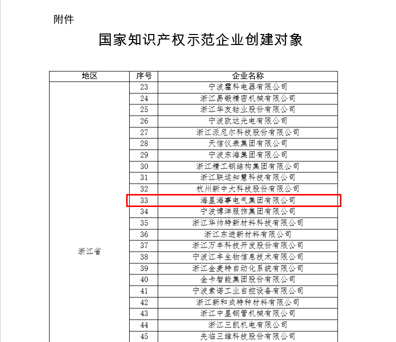 近日,国家知识产权局正式发布《关于国家知识产权强国建设示范创建对象评审结果的公示》。经企业自愿申报、省级知识产权局推荐、国家局严格审核与专家评审等层层选拔,海星海事电气集团有限公司成功入选“国家知识产权示范企业创建对象”名单!