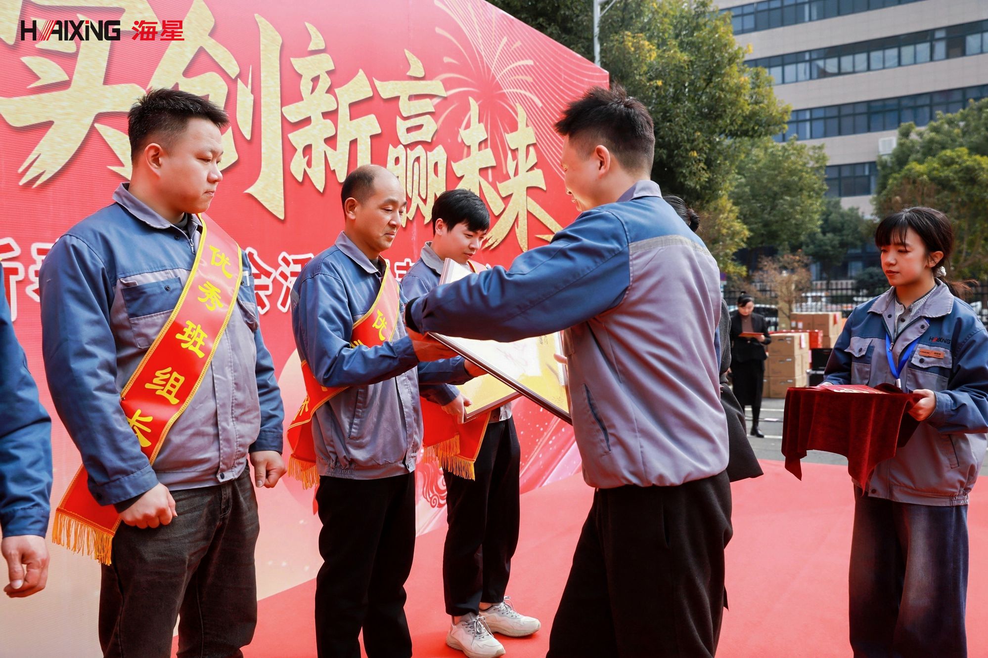 在庄严的音乐声中,在庄严的音乐声中,先进工作者、先进班组、先进部门/车间、奉献团队奖、优秀党员、优秀销售代表等奖项依次颁发。获奖者们身披绶带,手捧奖杯与荣誉证书,脸上洋溢着自豪与喜悦。