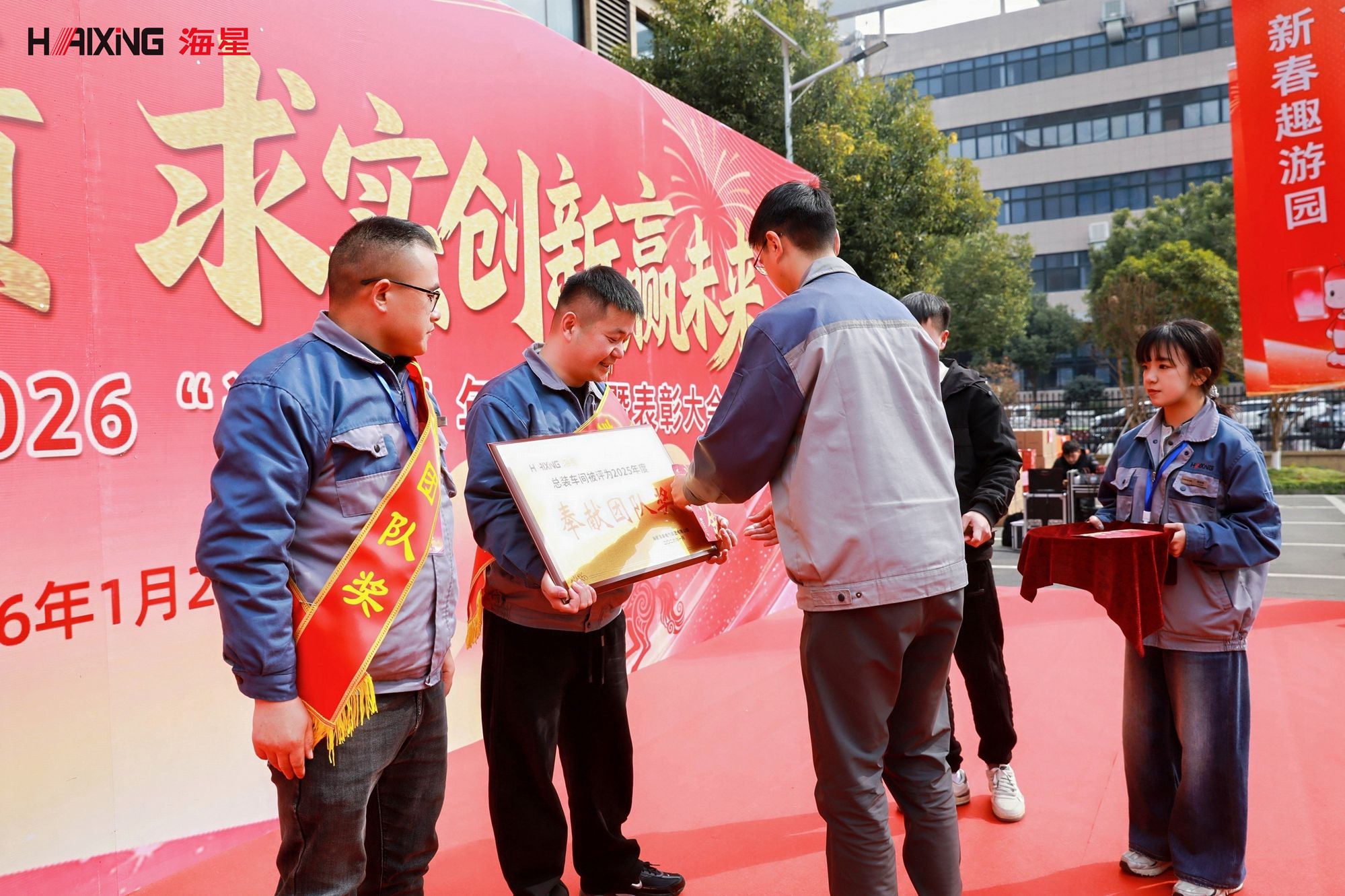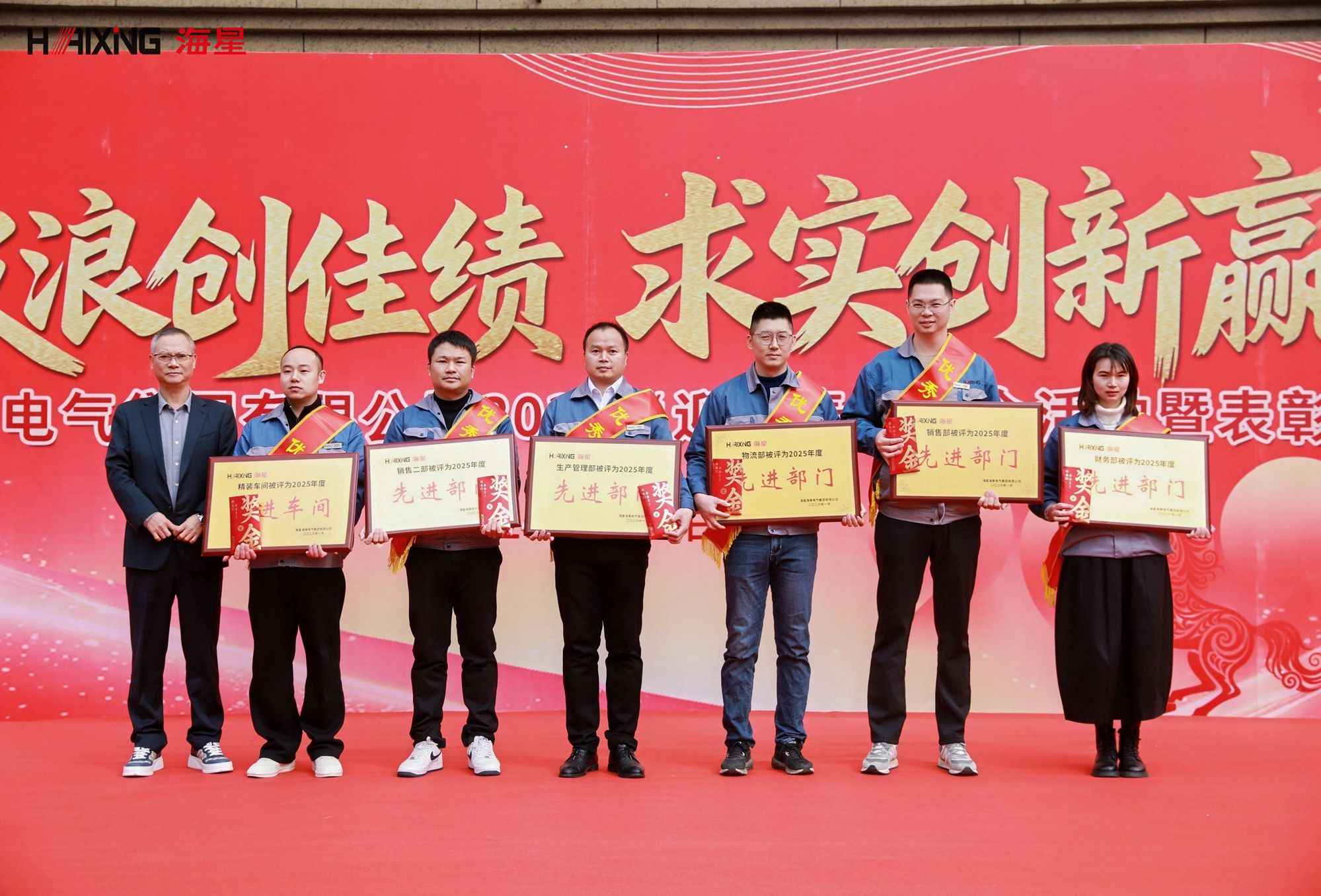 岁末年初,辞旧迎新。2026年1月24日,海星海事电气集团2026“迎新春”年会活动暨表彰大会在公司厂区内隆重举行。本次活动以“乘风破浪创佳绩 求实创新赢未来”为主题,分为表彰大会与趣味游园会两大环节,旨在表彰先进、凝聚人心、共迎新春。